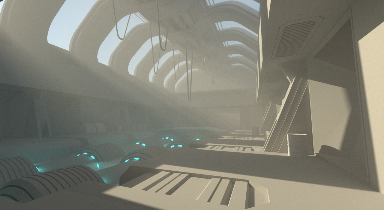For strong light shafts, use a dark environment and a bright small light source. This creates maximum contrast to bring out the volumetric properties. If using Octane Daylight, low turbidity is best to bring out the brightness of the sun.
