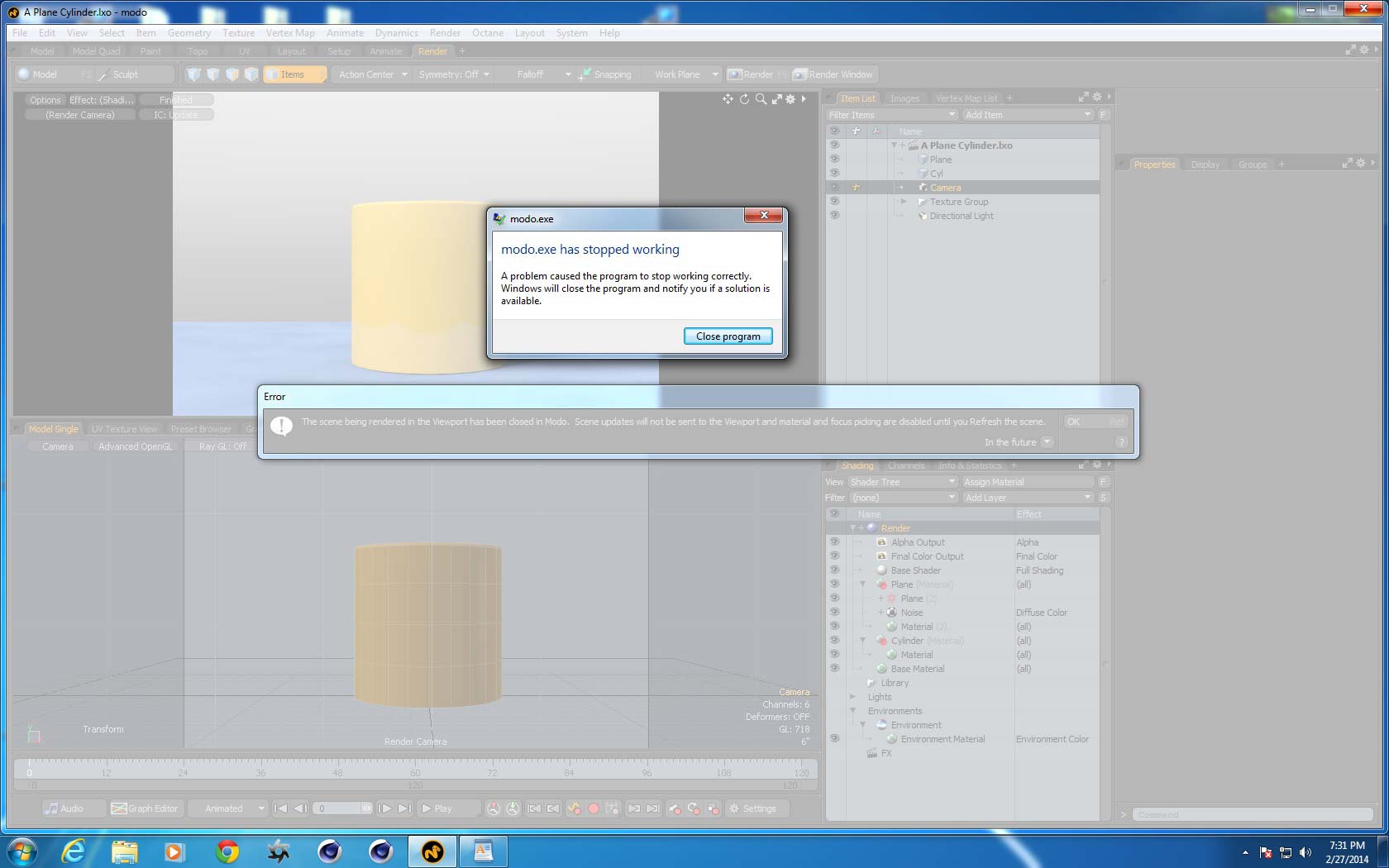 Then if I select close scene or close window the error dialog comes up, then Modo quits.