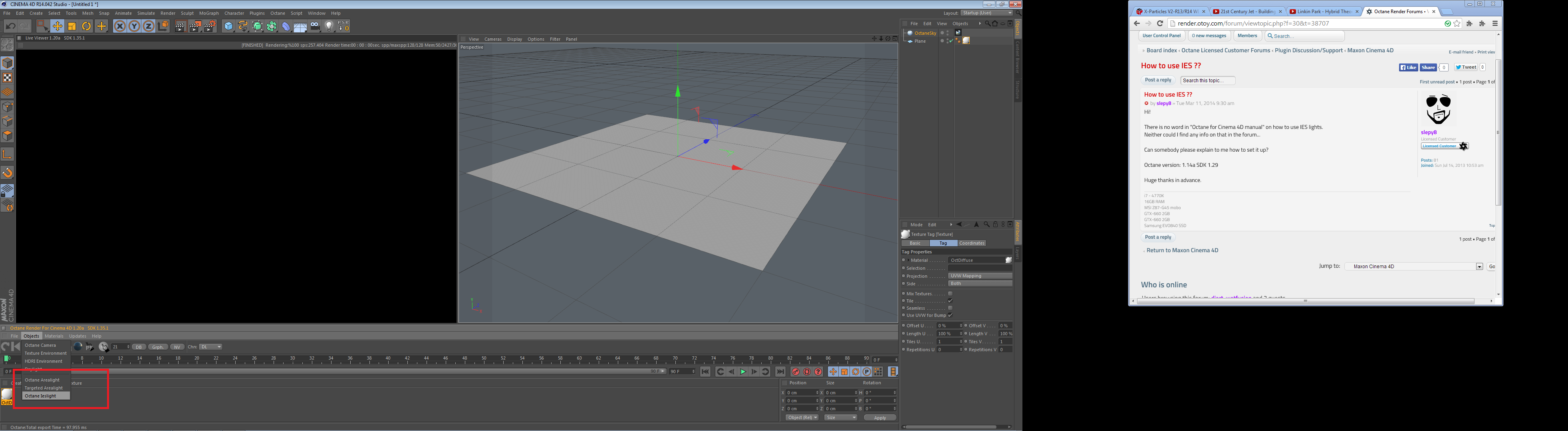 click on the octane ieslight like is show in the pic