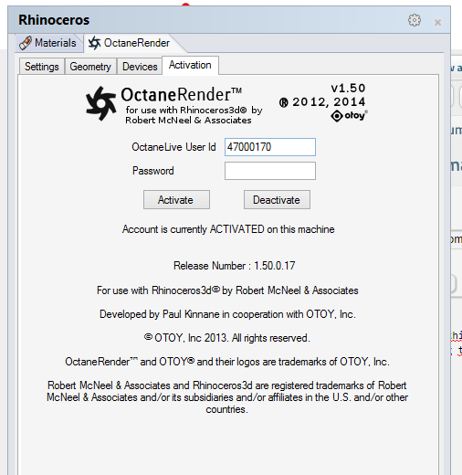 Hi - I'm sorry - I'm still not clear on what tools you are using to export to OCS from Rhino. Can you post a screenshot pls? If you are using the OctaneRender for Rhino plugin, the "release number" is on the Activation tab.