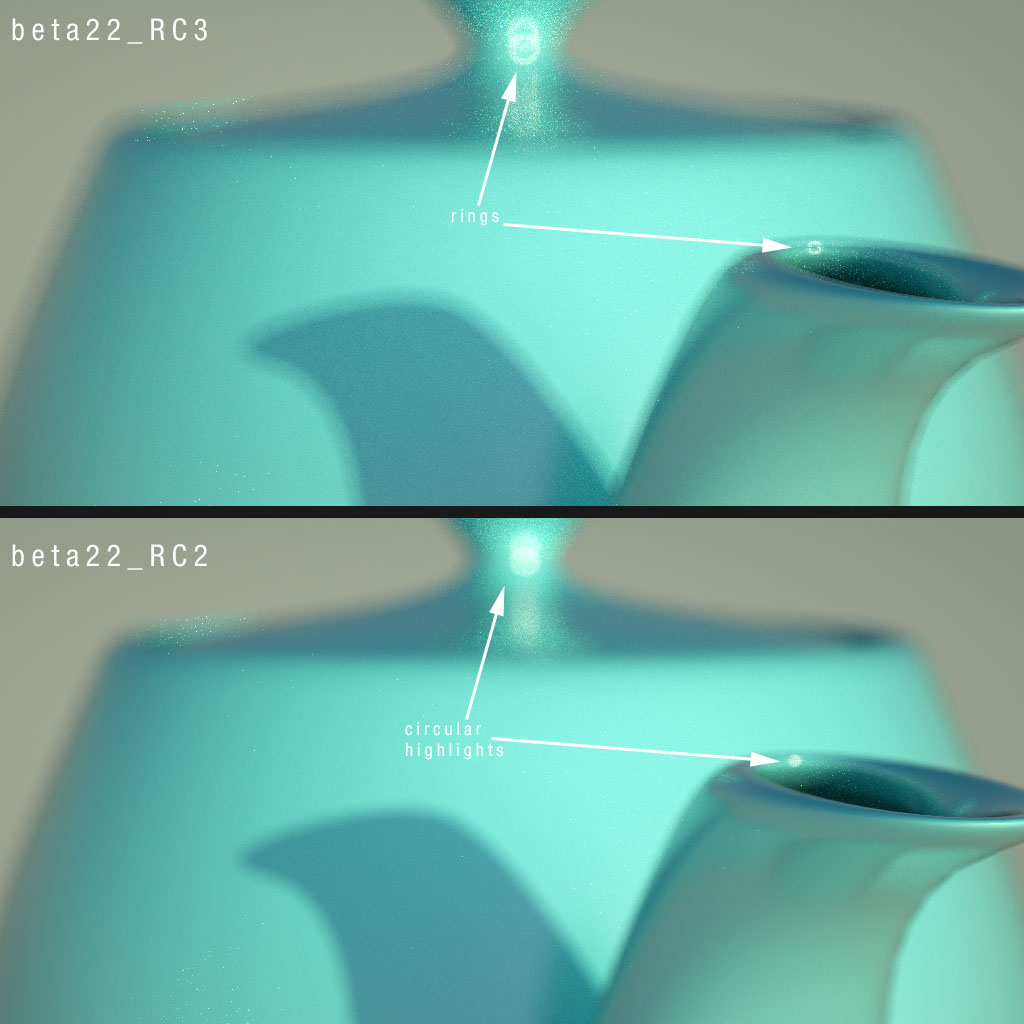 yes there is. attached the same render with previous RC2 comparision, note how the higlight is circular, but now in RC3 it's a RING. In the highlights you can see best what's the shape of the Depth of Field.radiance wrote: