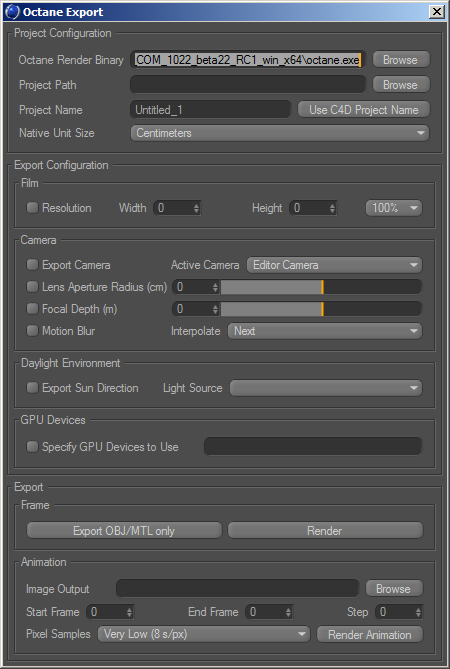 The first cut of the UI is finished and I'm working on the actual scene export (as you all know, the C4D OBJ export is not really useful for Octane). I hope to be able to release a first version this week or on the weekend the latest.