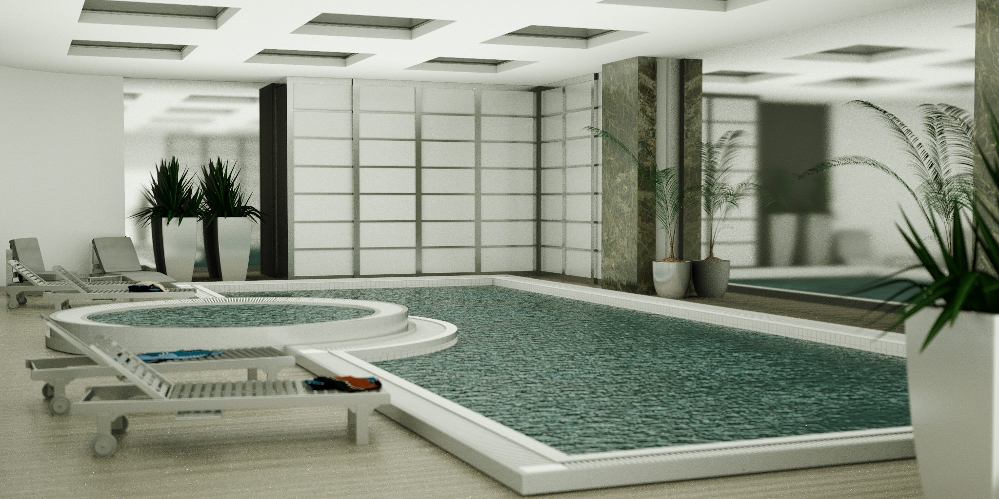 waves in pool are totaly wrong becouse its indoor pool. there shoould be a flat "mirror" water not waves of any kind. (if You are aiming for realism)