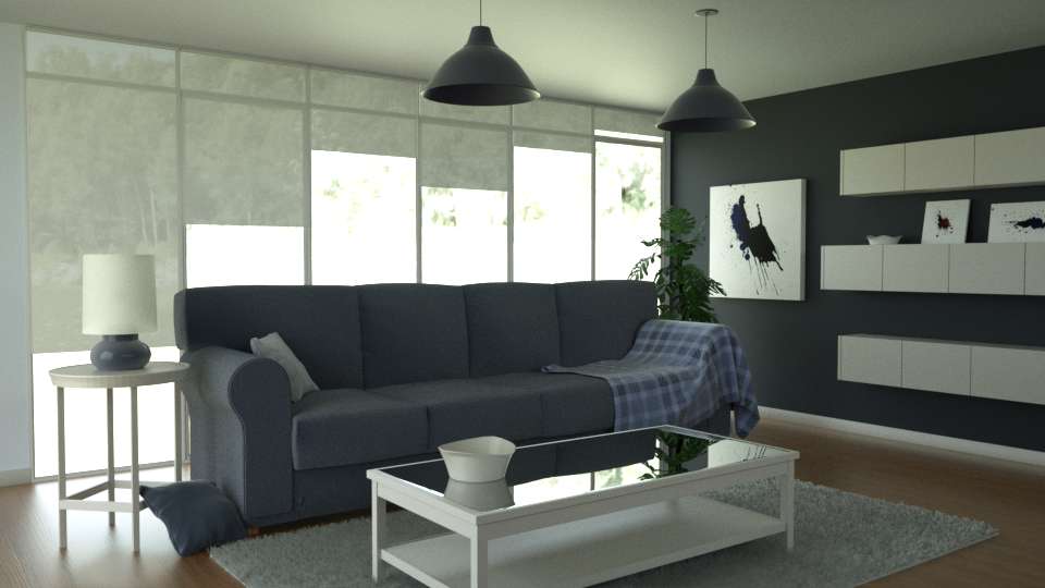 Also, any tips for fabric? Having a tad issue with it as well I think. And also with Semi-transparent materials such as lamp shades and blinds? I've made the opacity a bit lower as a temporary thing. There is a bump map on my couch and blanket but this rendering hasn't gone on long enough to render out those details.