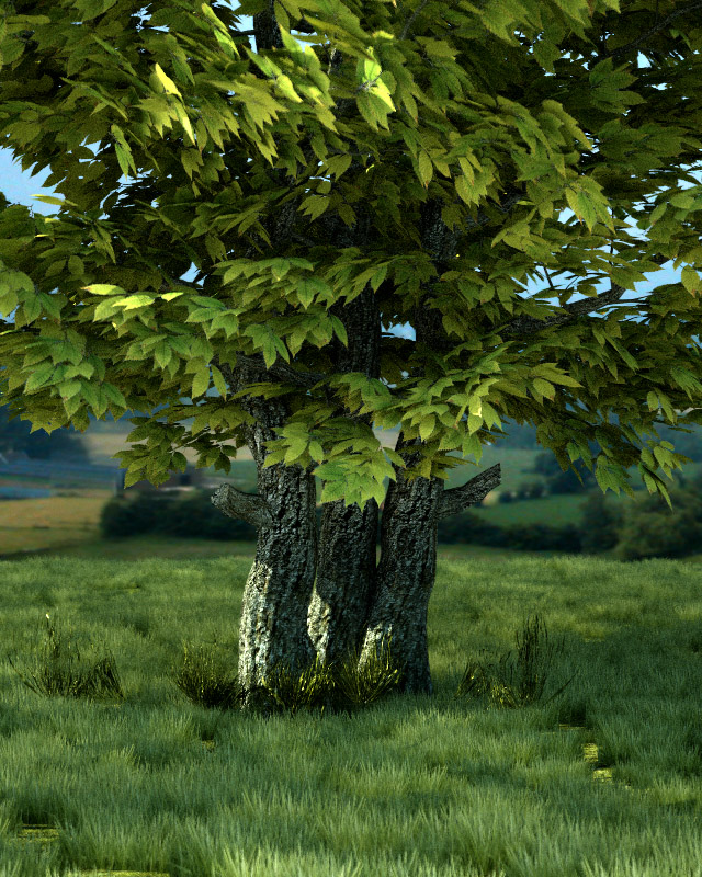 I just took some time to test Octane with this home made tree, opacity used for leaves and grass.