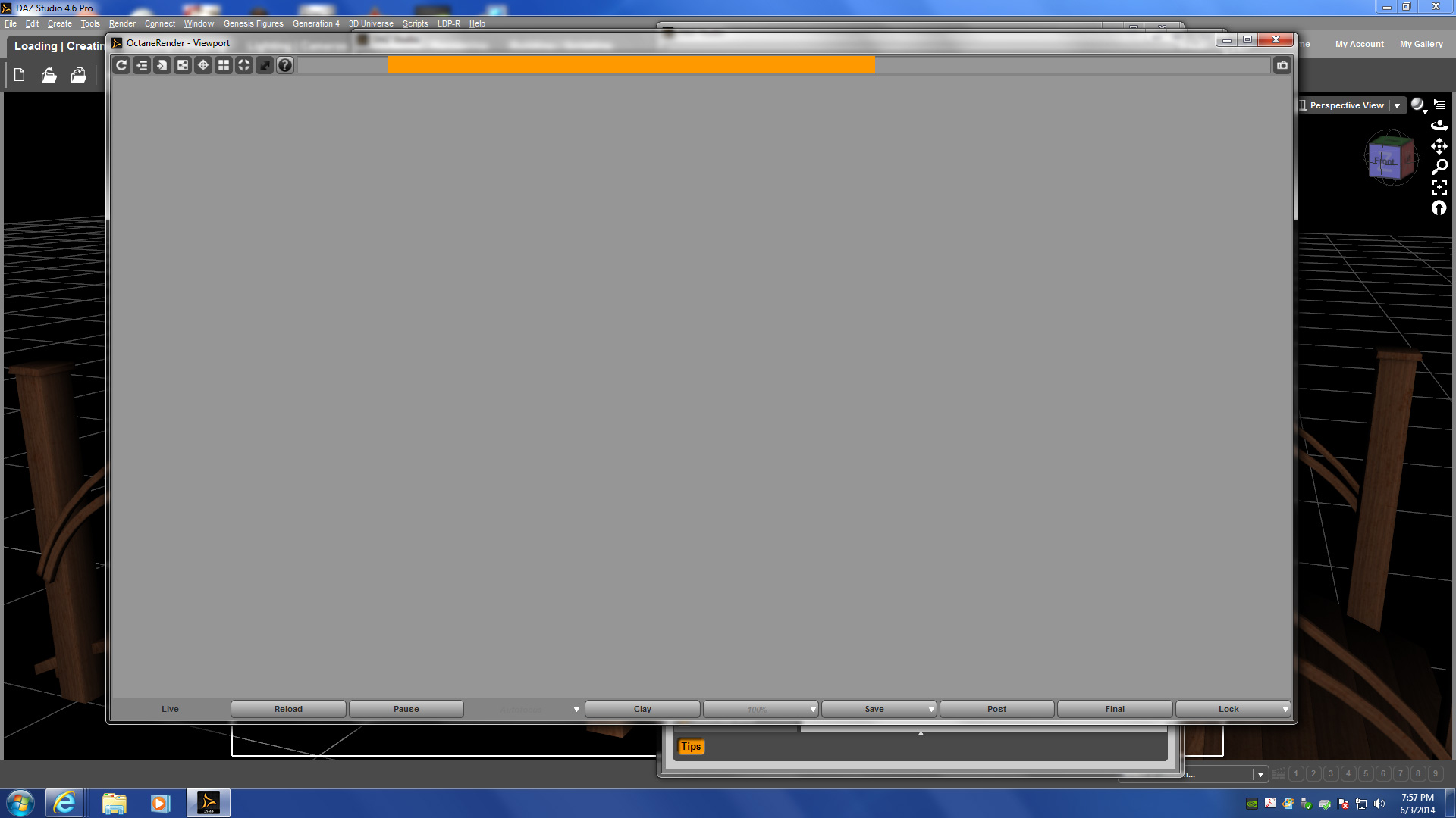 Viewport comes up. Orange bar cycles across the top. And nothing else.