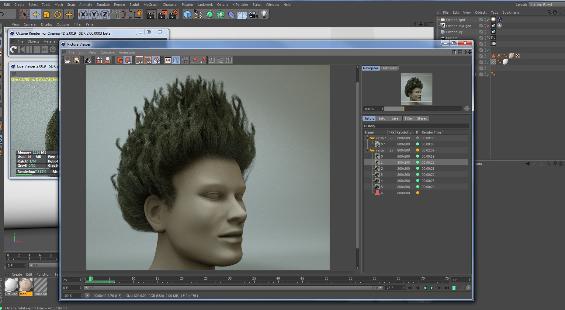 Octane 2.0 + C4D: Hair