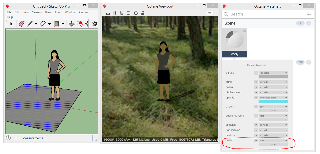 Hi Seeker!Seekerfinder wrote: FEATURE REQUEST: Would it be possible to have a function where we hide geometry that catches a shadow while retaining the shadow? Effective a shadow catcher in the plugin. I see we don't have the MATTE setting in the diffuse material node in the plugin. But having an approximation of shadows in SU without going to a 3rd party composting app would be the preferred workflow for me anyways. This would be great if possible!