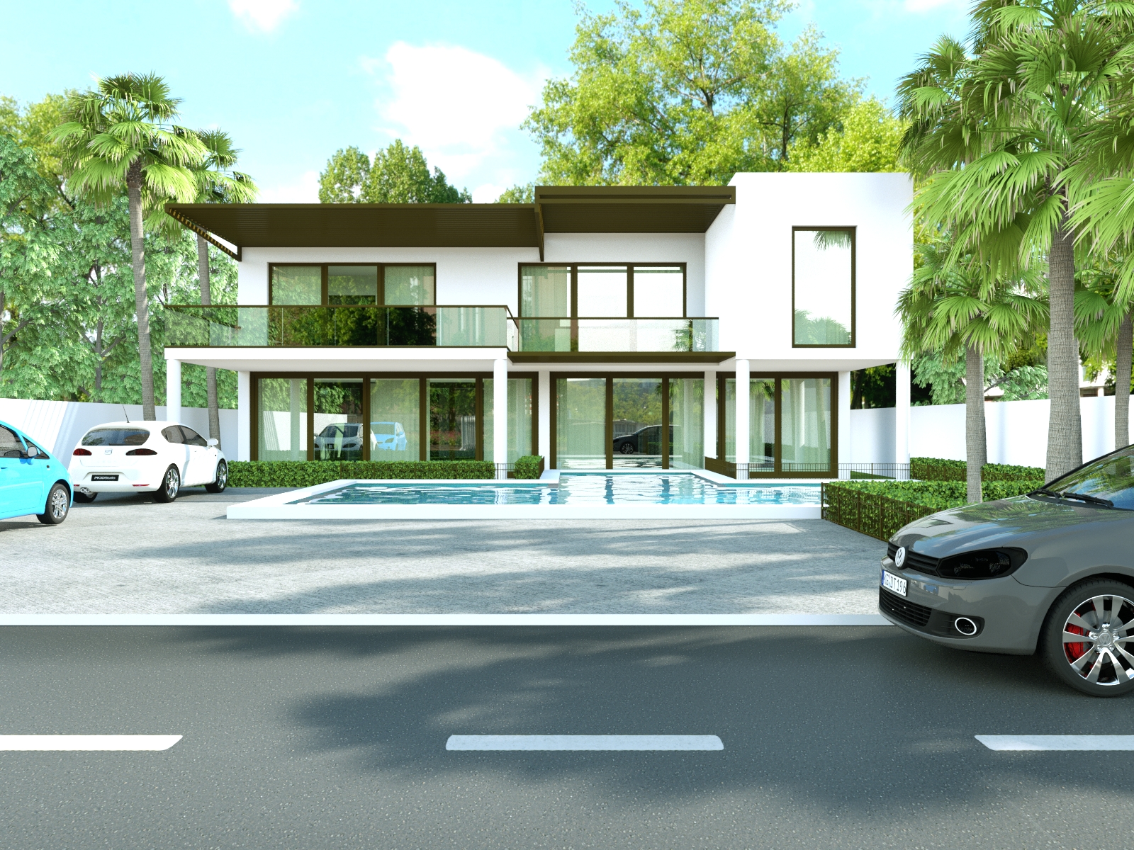 lo que Glimps quiere decir es que estas montado sobre la casa, y la toma no le favorece, alejate un poco y deja que entre la ambientacion y la arquitectura el puedes hacer una mejor composicion.