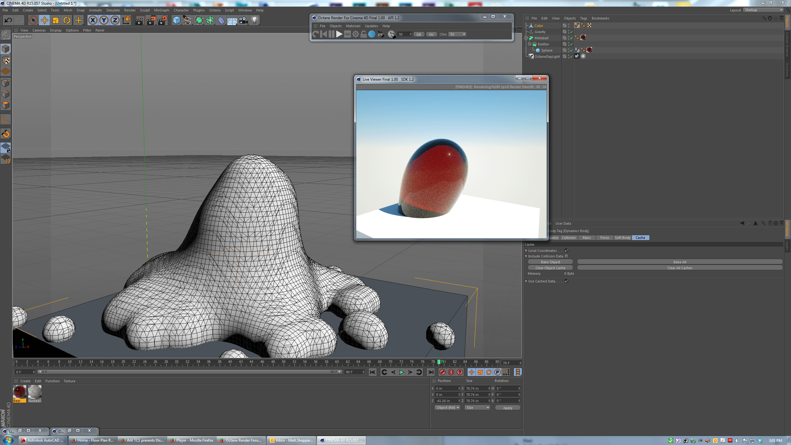As you can see in my screenshot I am having some problems getting Octane to render this goo dripping onto this cube. The cube is a collider body and renders correctly in cinema 4D but does not show correctly in octane. Any ideas?