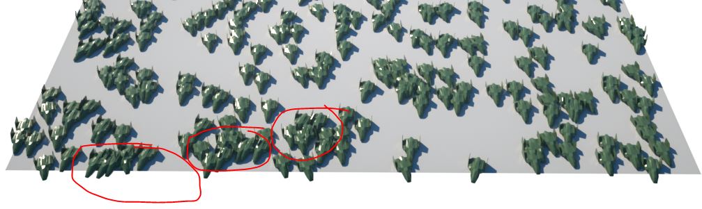 Goal is to make a field of scattered objects with to the eye all looking unique in variant of shape, color and slightly rotation.