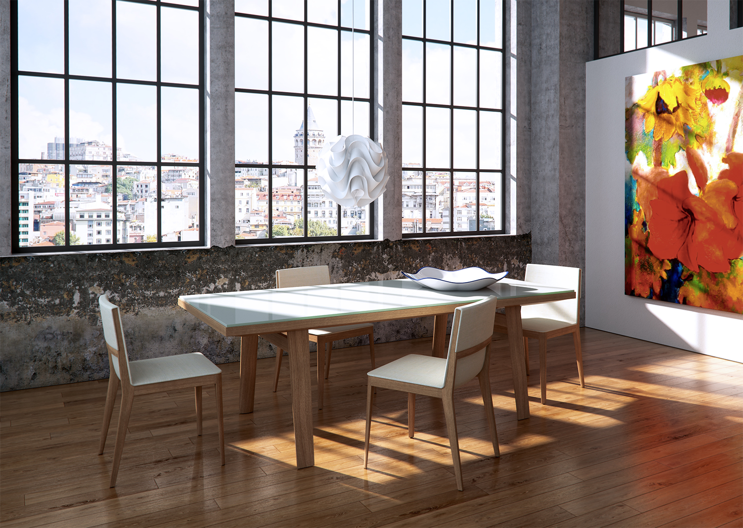 2) Direct sunlight through gloss material for glass with opacity of 0.2