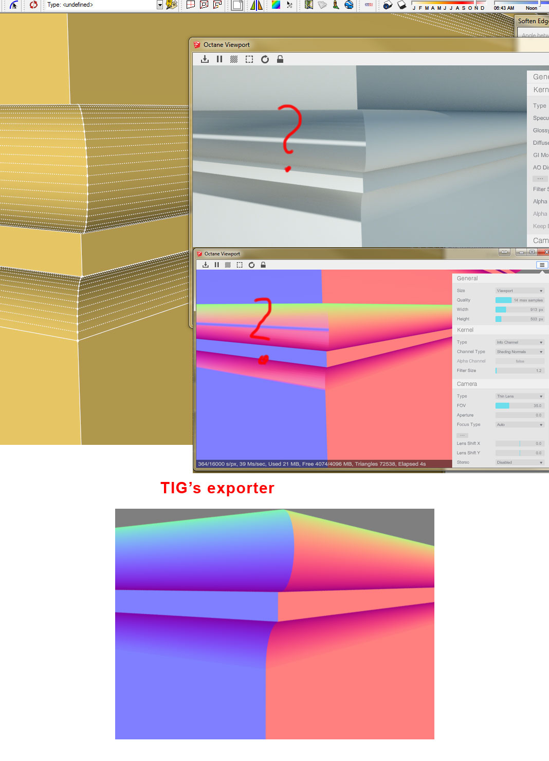 fuzzybro wrote:If you have weird normals, right click on the mesh -> Octane Mesh -> Switch "Load Vertex Normals" to "false" and click Apply.