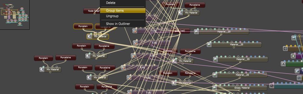 Below is a screenshot of my node setup. Today I discovered the Group-node feature, which will make the scene less messy. I`ll retry with grouped nodes.