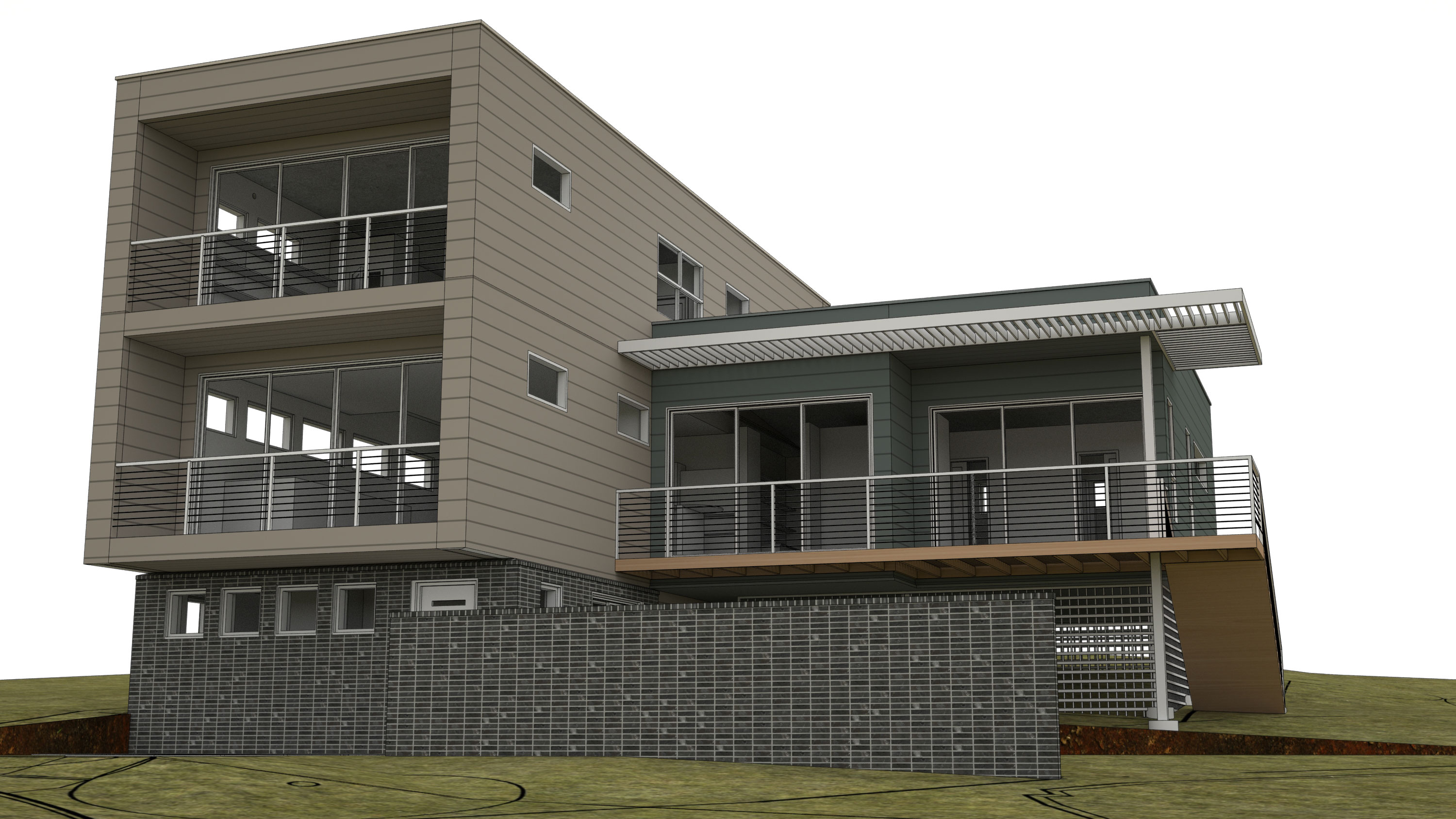 Line rendering overlaid on Octane GI rendering to help during proof phase.