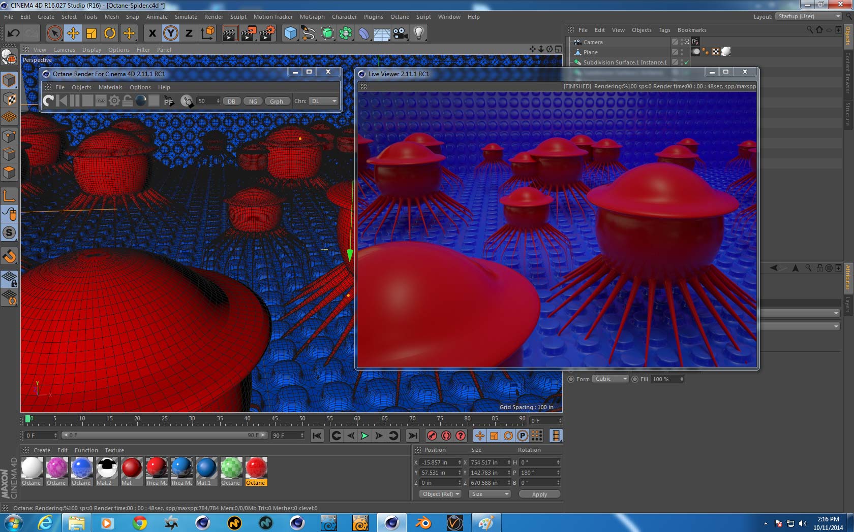 the image different (see Octane-Spiders_2). I get the same result with Direct Lighting and Path Tracing.