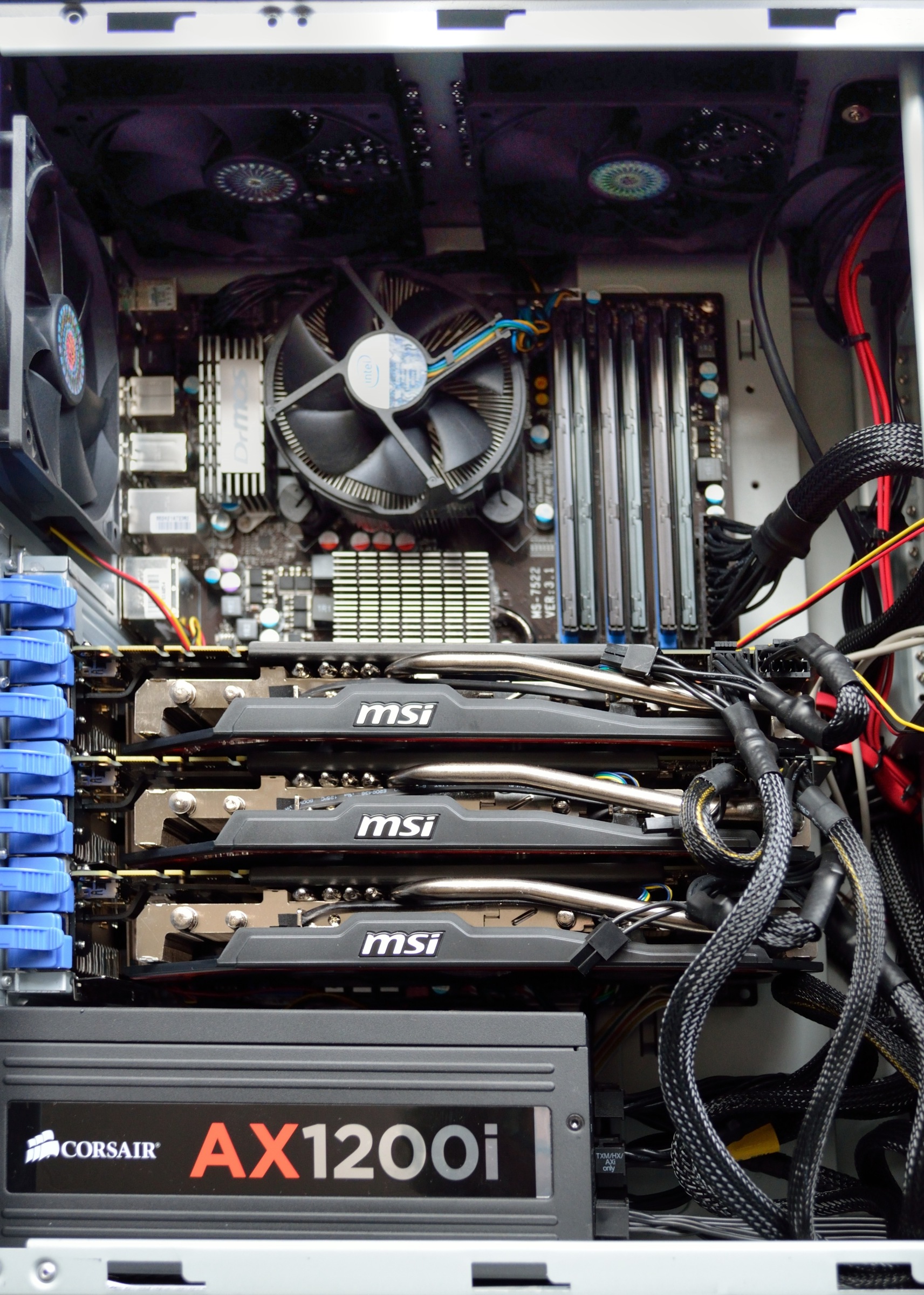 This sytem had one gtx275 for the monitor and 2 Titans Black to render.
