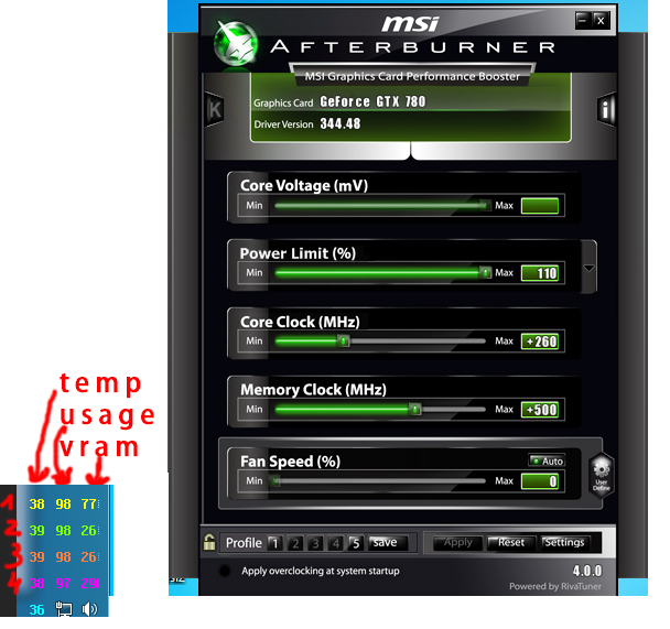 I played with the GPU settings before, just to learn a bit, but now I had to play with the settings to get the system work, because the temps were getting to high.