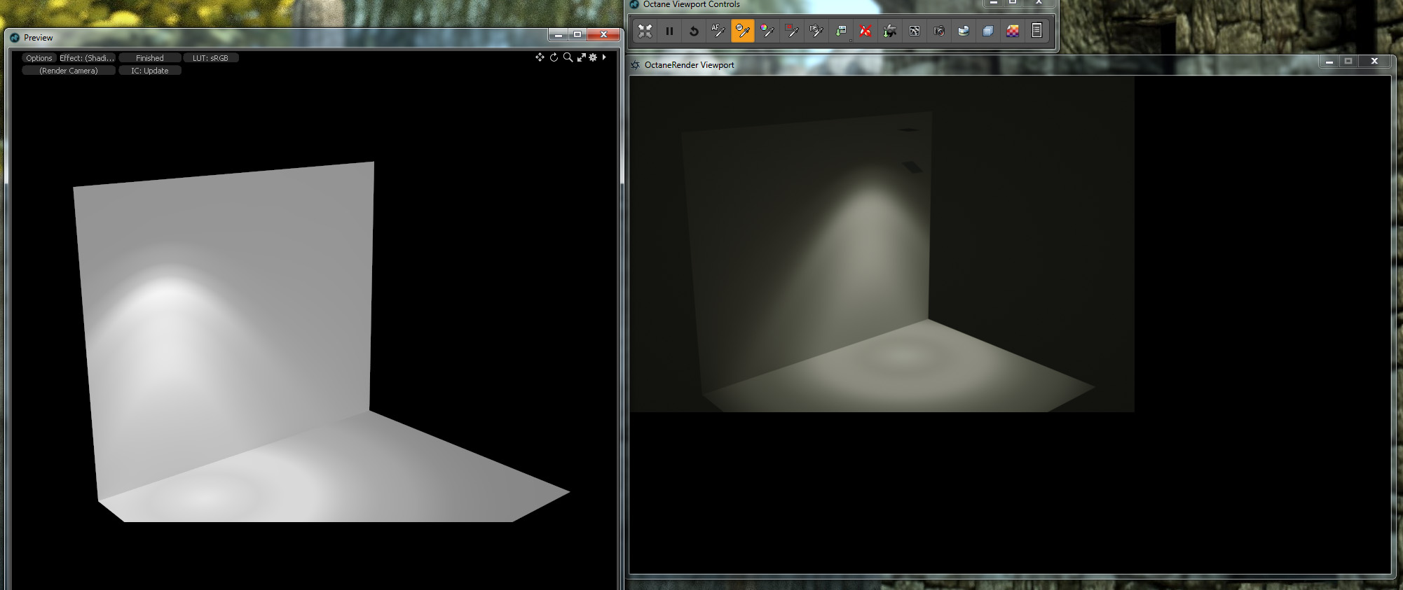 I am just wondering how to get an IES light to look like the modo (correct) one. Is it applied to a sphere? Half sphere? Plane?