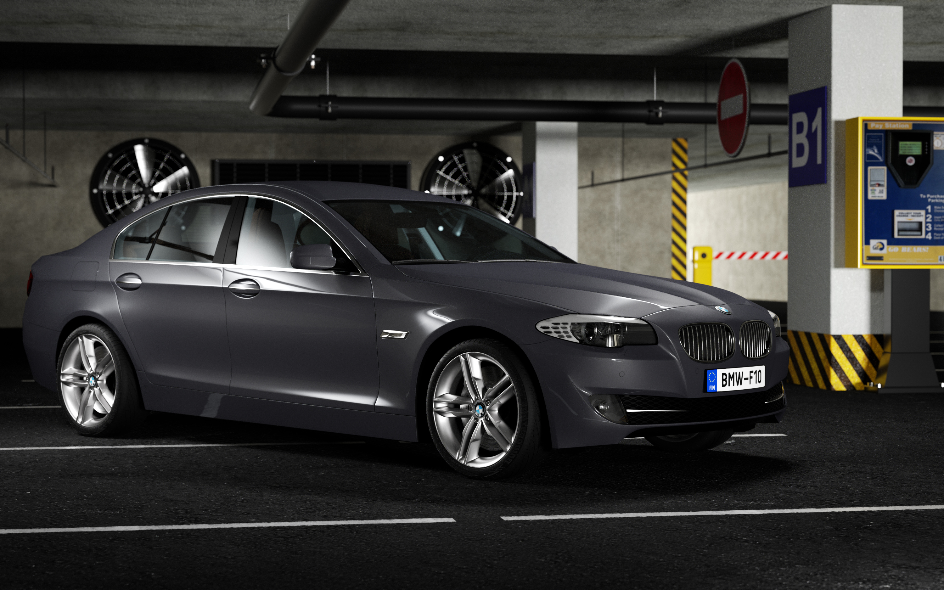 Regarding light setup there are 4 planes around the car with radial gradient in the emission and opacity, which were adjusted to get highlights. Also one big light plane outside the building.