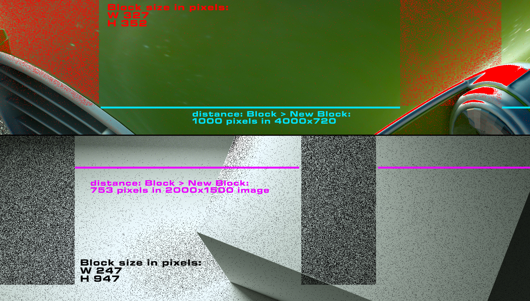 My steps was simple, I have just render two images, one with single gpu and second with both gpus. Both renders with the same amount of samples. After this just switching fast between two images I can see that block thing. Can you upload two rendered images, one with single card and second with two gpus and Pri. on?