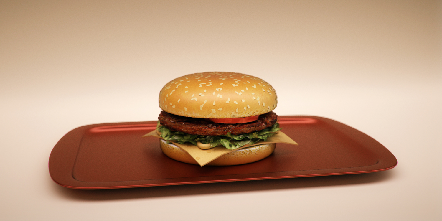 actually the only things that tell me it's a render and not a photo are cheese (too hard edges?) and sesame grains (too flat?). the meat is fantastic, I can even taste it