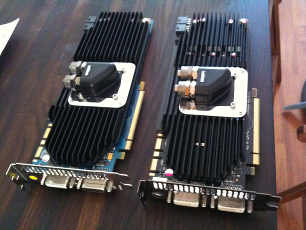 Now that they are watercooled they are both at 47°c idle and ... 52-55°c at full load with Octane.