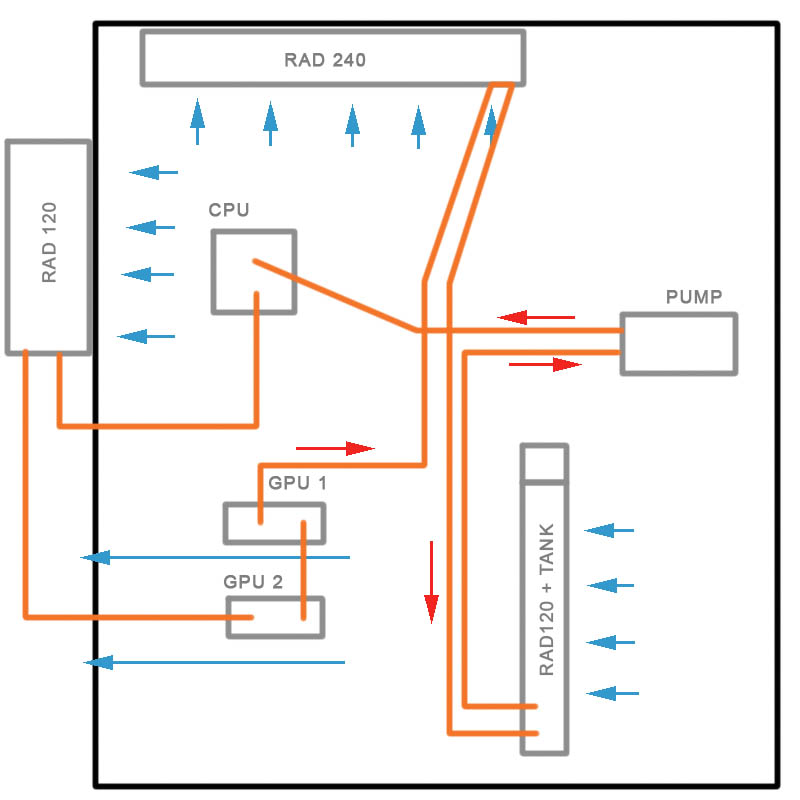 I have only one radiator(360x360x60) passive for the CPU.