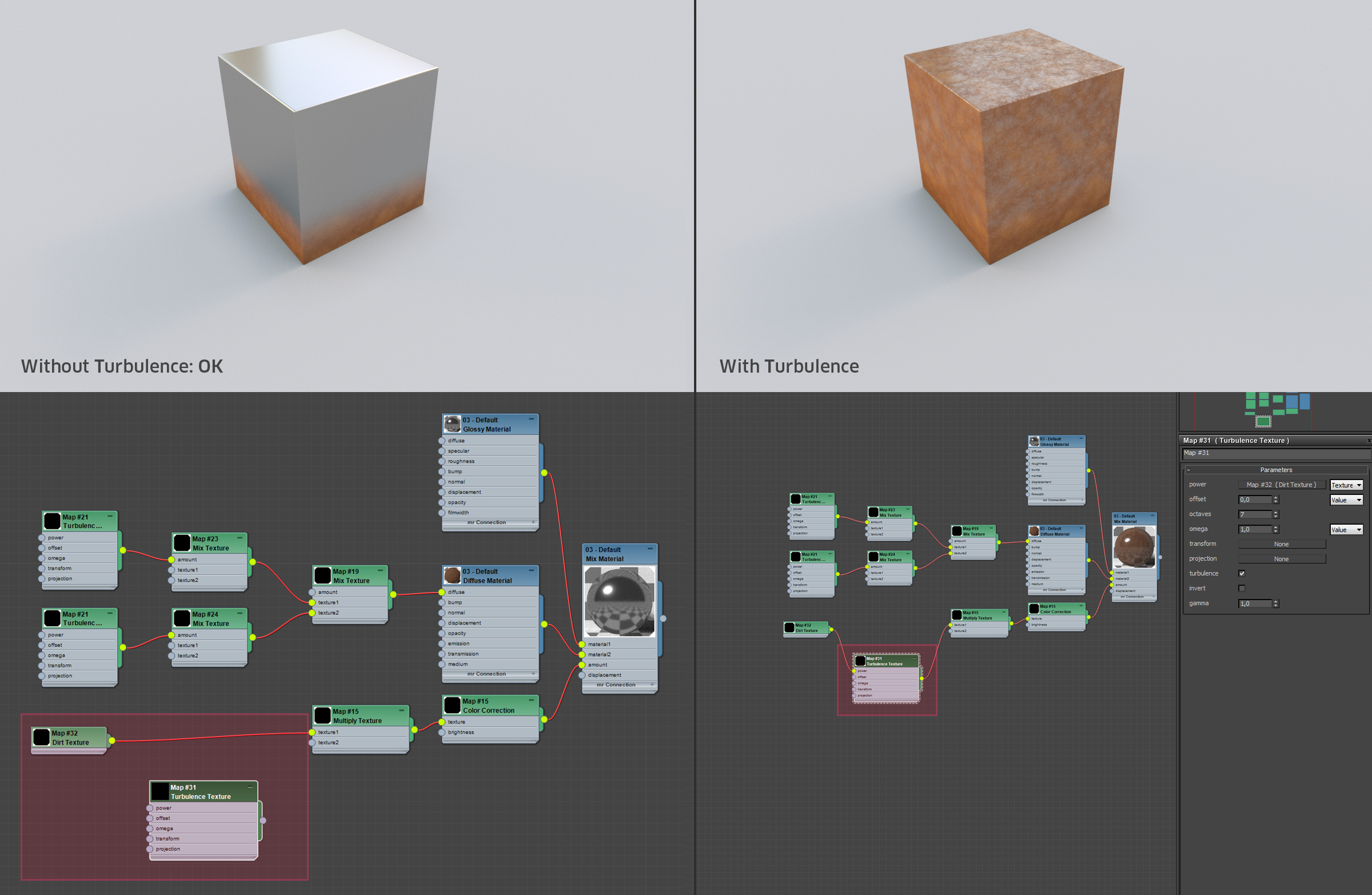 As soon as I connect the Turbulence Node to the amount the dirt radius seems to be ignored.