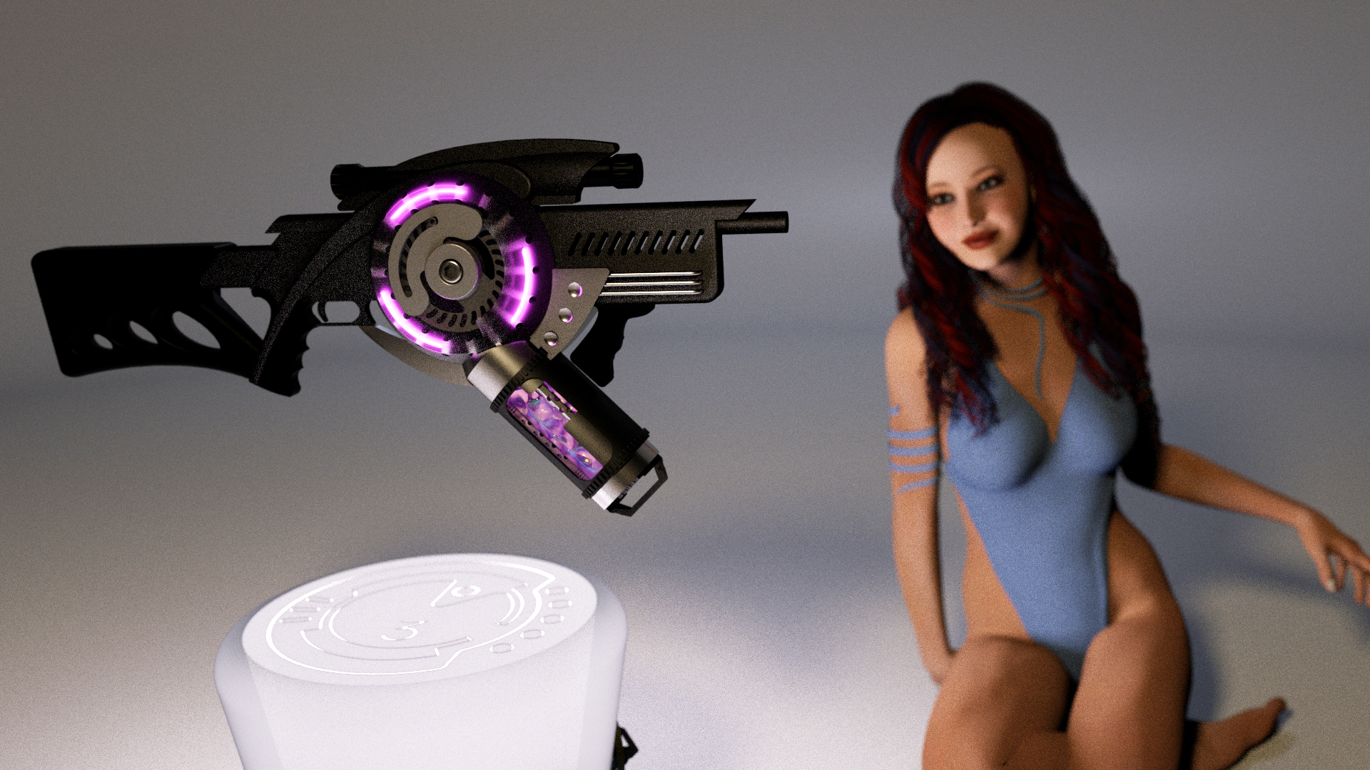 Rifle and scene modeled in Rhino3D, then exported as .obj, then imported into Daz3D.