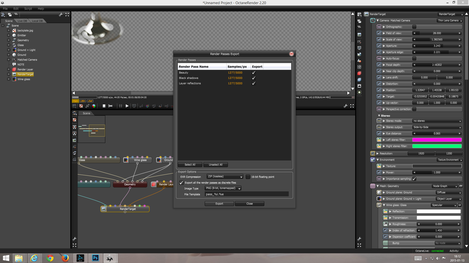 We had a look at exporting .psd files from Octane but there are only libraries available that support older formats and writing our own library would eat away a lot of our time.