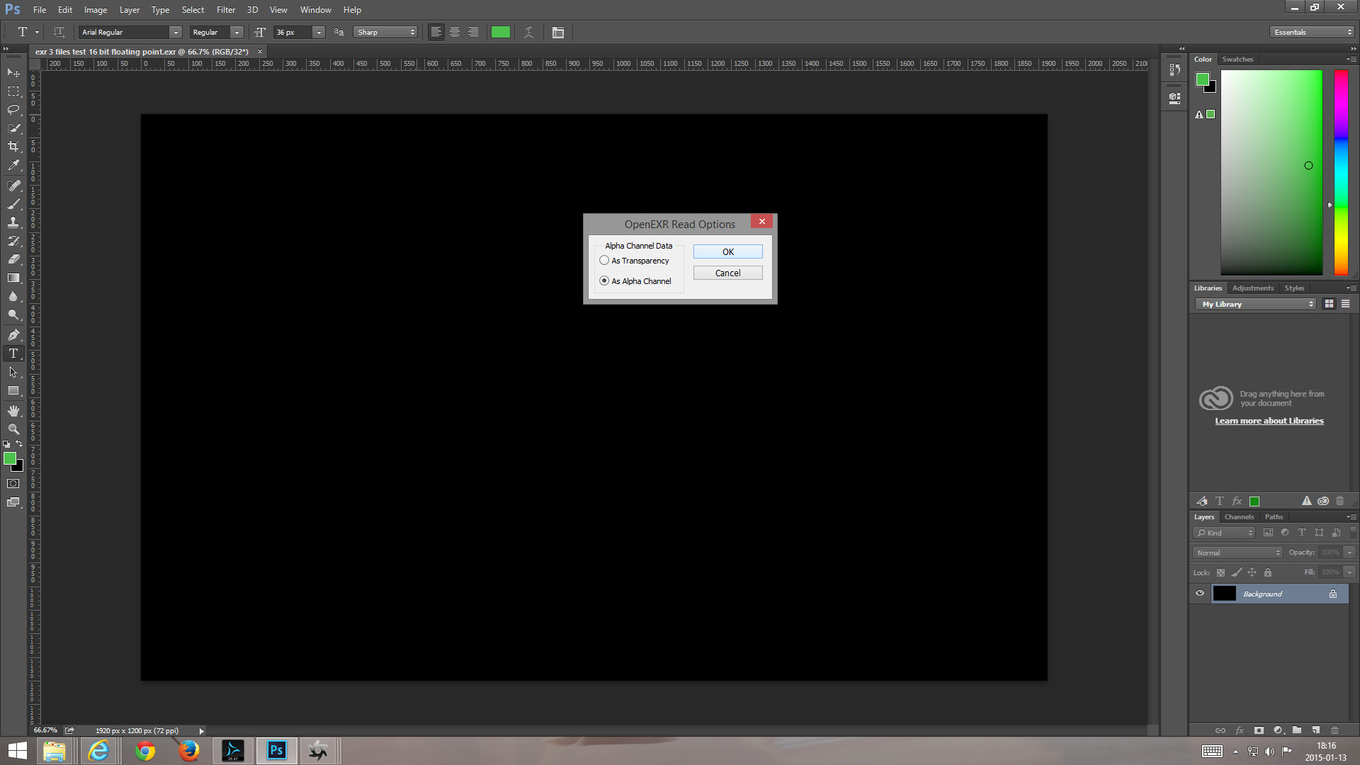 Why do I just get a plain black image file when opening the EXR in photoshop?