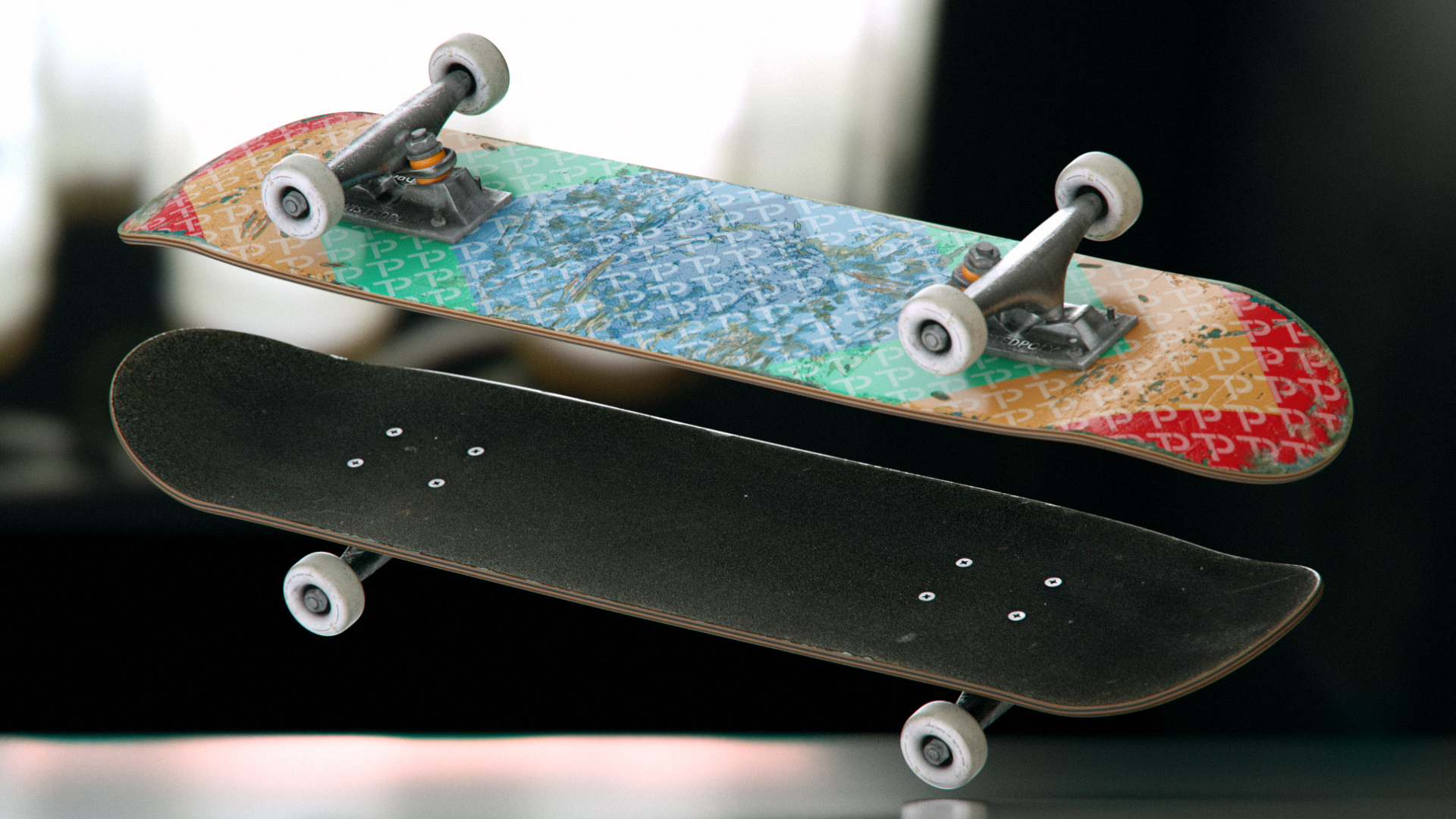 I modeled the deck based on an Element board reference. I already had the trucks model, so when I tried to put those together, things didn't match perfectly, so I cheated there a bit. I might go in and try to fix that, but will see how much time I'll have. I also left it like that since I doubt it will be noticeable in the final video.