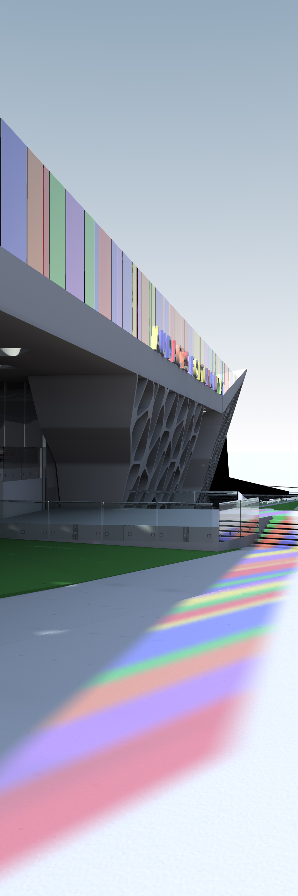 In an architectural scene where I'm using colorful stripes of glass, the daylight that passes through that glass should be projected on the objects behind with the specific color of the glass that acts like a filter retaining all the wave lengths of the white light but the one corresponding to the filter's color. Well, the rendering engine apparently can't do that.