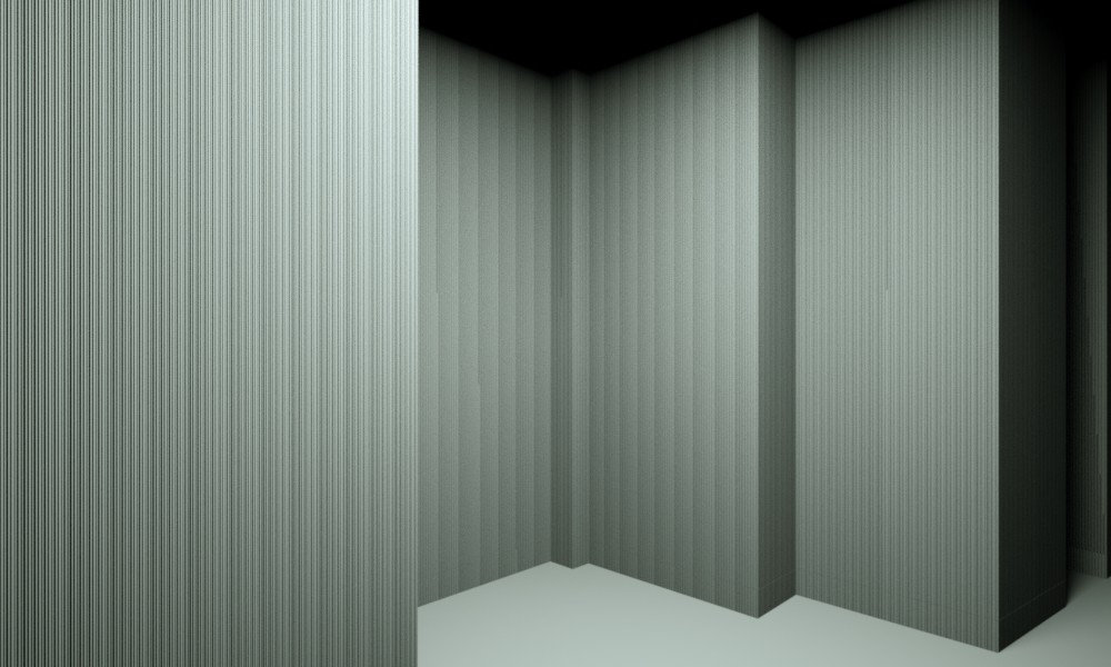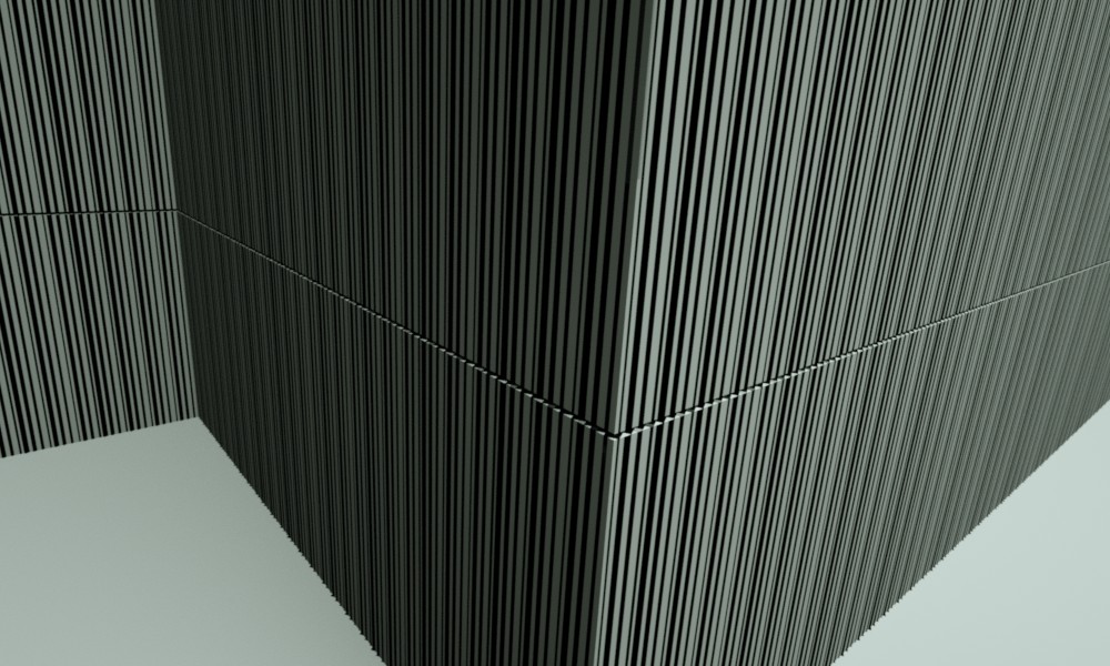 I just started a new scene, drew the outline of a room and extruded it. No matter what material I apply, I get stripes as shown here. The images I've shown (zoomed back and close-up) are with clay material turned on. (For reference, the segment at the bottom is 6" high.)