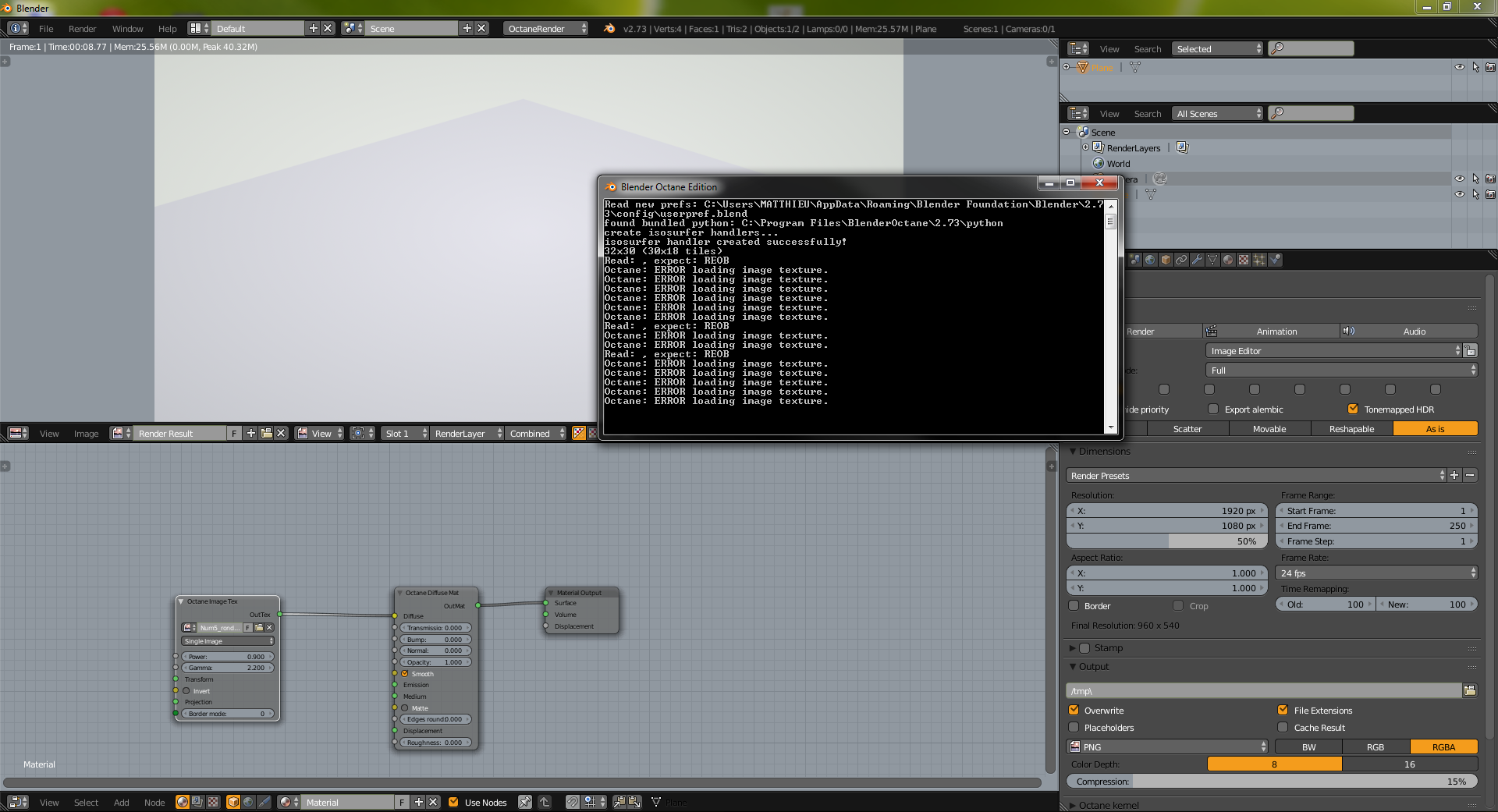 I found two things. The first one, after reset my blender 2.73 (de-install and clear folders for Blender Octane and Octane server and re-install), the problem still here but found it's due to network drive. The problem appear only in the Octane Blender with network drive. If mixed, as in video, network drive and local drive, bugs appeared too.