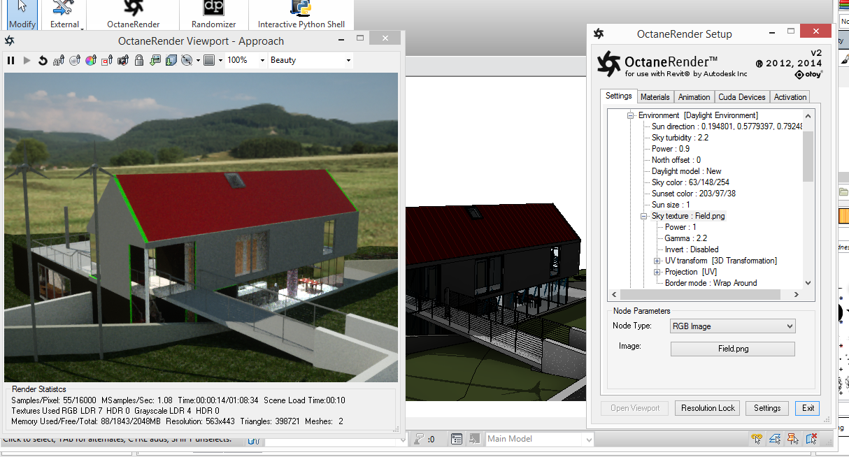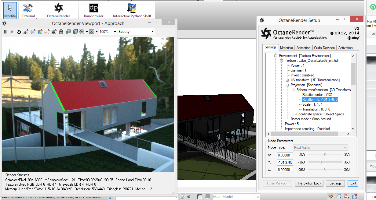 I've tried using several files from different sites listed in that link for HDRI but still can't find a satisfying result - the building is never directly lit as if it were in sunlight. For this submission we're going to have to use Vray and sketchup as we have run out of time. But for next dead line would be great to be able to render them on Octane. Any help is greatly appreciated