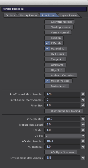 Do you have a recommendation for typical mulitpass Max settings for Zdepth and Motion Max speed? I'm rendering Zdepth and motion vectors. The depth is working great, but my motion vectors are coming in plain white. Also, do you think 10 is too high for Zdepth Max? I want to be efficient. It seems good according to my test render. The motion vector as I said is pure white, so I won't post that. Here my dialogue box attached...