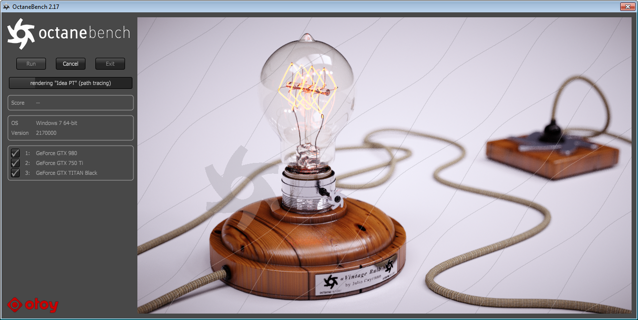 Remember the OctaneBench competition from 2013? Last year we got around to actually implement it, but then a lot of things changed in the render engine and we decided to wait until things have settled a bit, to make sure that the benchmark results are still relevant for later version 2 releases.