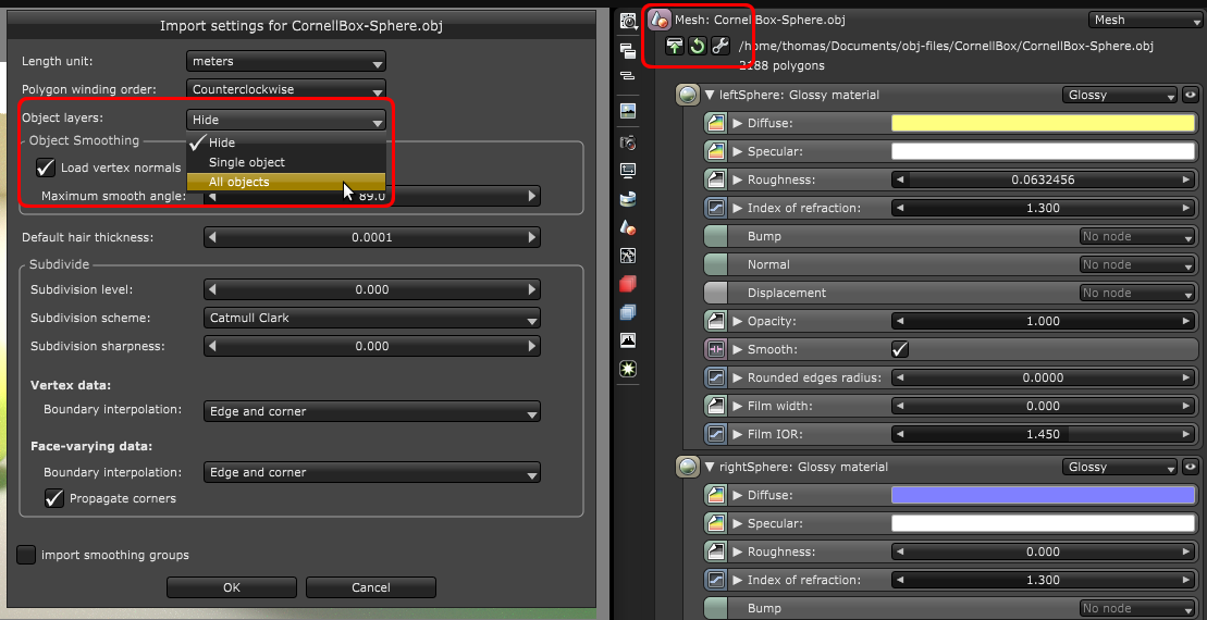 Object layers combo box. This will create new pins on your mesh node (A necessary condition is that the obj files is exported with groups. If not, Octane can't separate distinct objects). Like this:I don't think I understand your second question, but I'll try to answer anyway. I guess you are confused by nodes and nodes in a pin. There's absolutely no difference between them. You create external node via the right-click popup menu in the graph editor and you can create nodes in pins via the node inspector. How the plugin creates the node configuration is up to the plugin developer. We notice that more users are working with a hybrid approach these day where they use plugins to set up a project but tweak it later in the standalone so plugin devs are taking more care of setting up nice node setups.