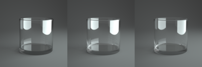 Ok, I have been fiddling around with the specular material trying to improve things. Turns out, that the Fresnel reflection that is being calculated is too bright. It is like all light is polarized perpendicular to the reflection plane (in reality it's usually a mix). I fixed that and also tried to improve the internal reflections. Tell me what you think (the left glass is rendered with 2.21.1, the center glass with 2.22 and the right glass with the (hopefully) improved specular material):itsallgoode9 wrote:good to be able to have the option if needed thoughmanalokos wrote:There are no unreflective surfaces, a specular material without reflection is not realist.for real though, the purpose of this feature was to be able to lower the reflectivity of specular material, which are very low at normal angles. water, for example is around 2% at normal, which if you set Octane to do this, it would SEVERELY darken the glass material.
