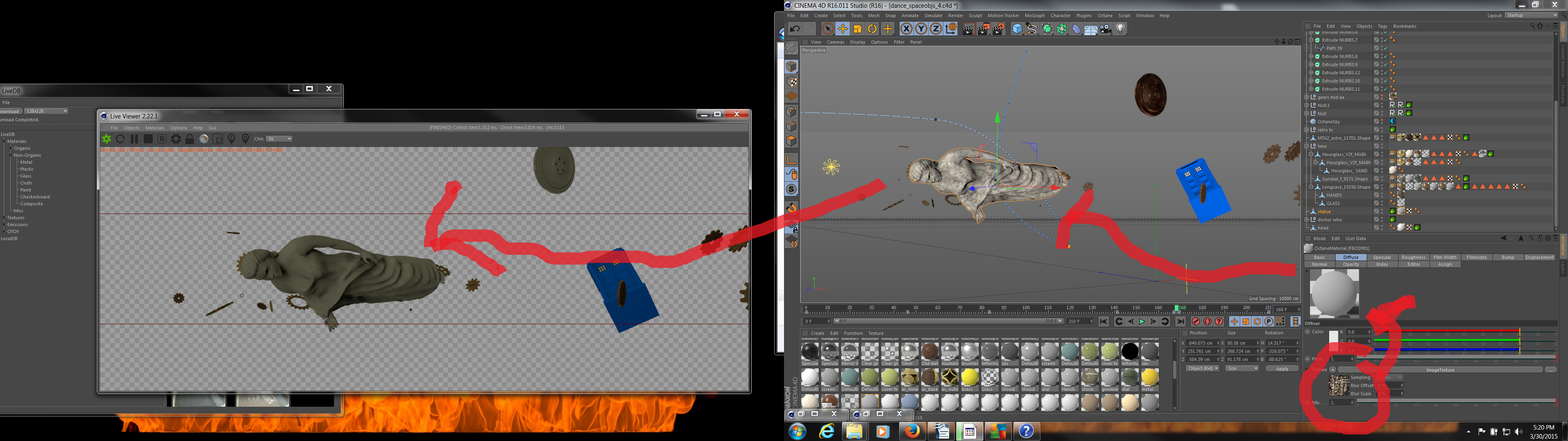 pic showing material with texture not being shown in ball - showing in preview cinema4d win but not in live viewer octane
