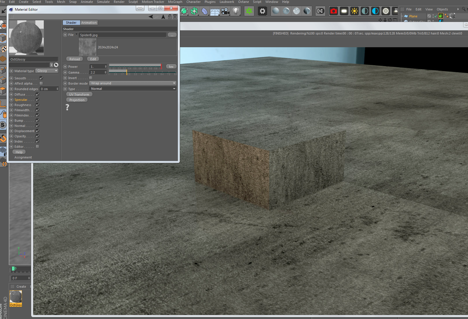 Intel Core i7-5930K / ASUS X99-E WS / 2 x EVGA GeForce GTX TITAN X 12GB / 32 GB RAM / Windows 10 / C4D R16 / Octane Standalone 3.03.3 / OctaneC4D 3.03.3-R1