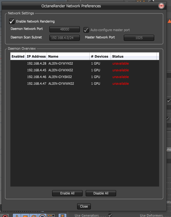 I'm getting this randomly and have to uncheck and recheck the box for use network rendering. Also, sometimes one client may fail without any errors on a slave (I'm guessing one is failing) and the render just stops and freezes c4d. This has been happening a lot, even in 2.16+. Should I manually pick the port? Will that maybe fix it? It also freezes on the first frame, quite often and I have to restart it. Almost like it's trying to connect to a slave and when it doesn't the frame gets stuck at 99.x%. Also I thought you changed the info at the bottom to be able to show everything? I can't see slave numbers or other info when rendering at 800x600.