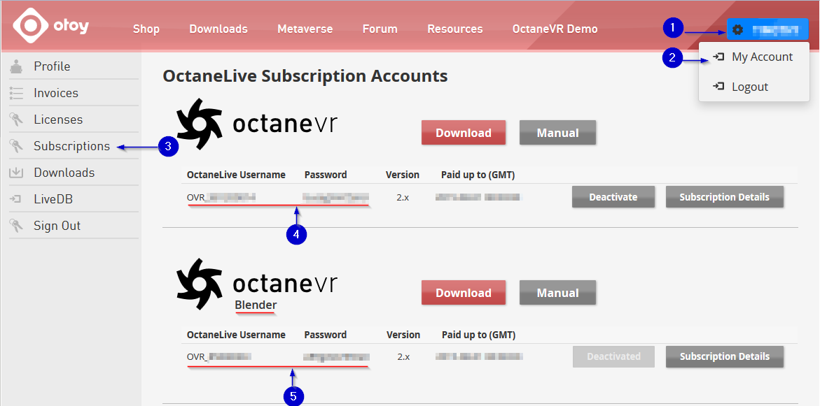 and your OctaneVR Blender subscription credentials in the lower two boxes.