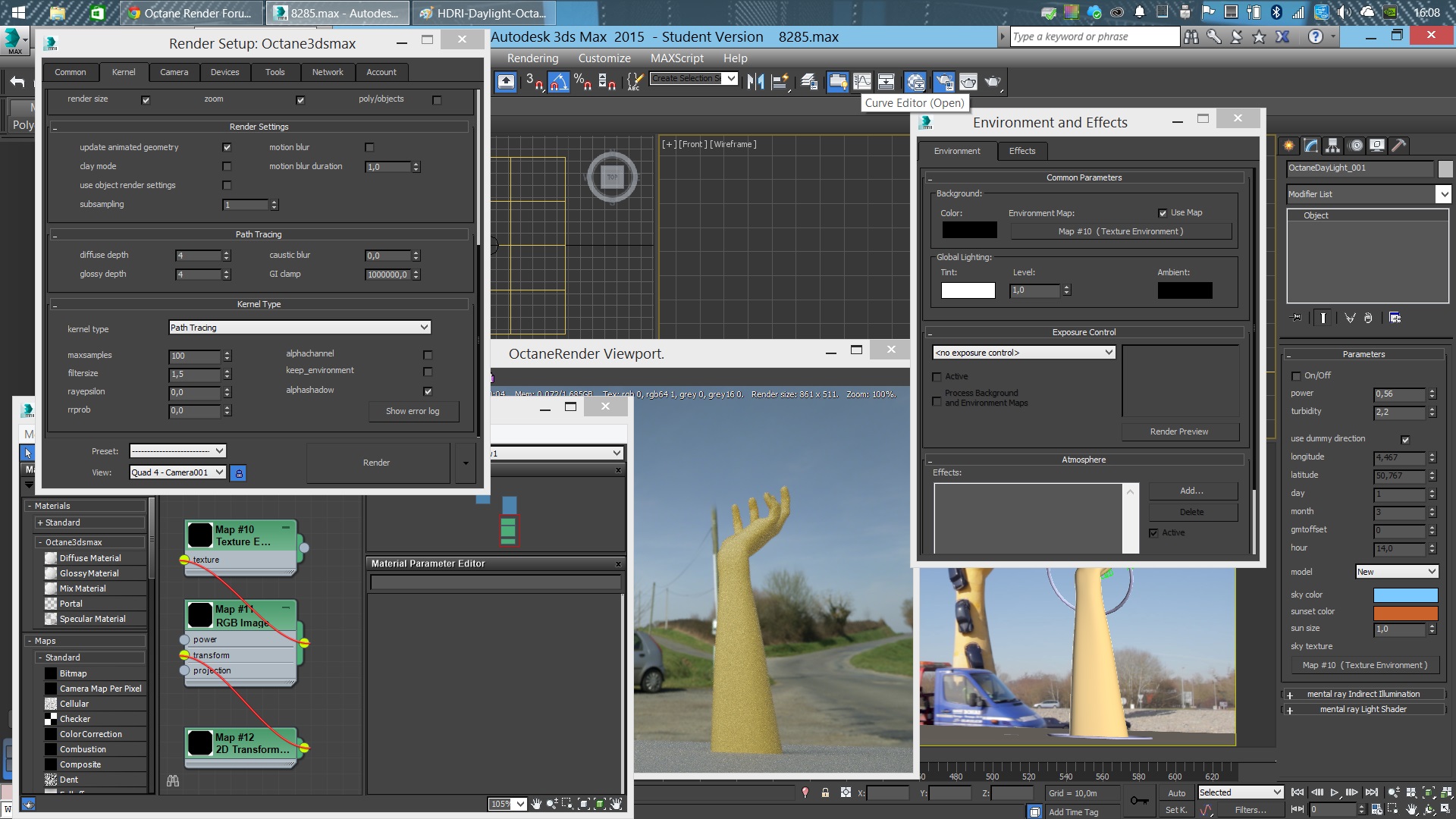 I use the environnement map, but no change, I only have the default sky. But, if I unchek the daylight button "on/off" to stop the daylight, it work, but with only the lightning from my HDR file.