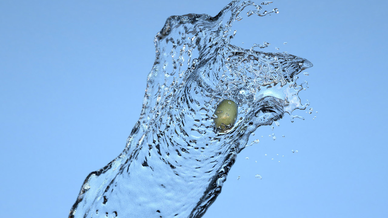 One small nit that I have is that the olive looks like it is unnaturally floating across the screen (as if gravity didn't exist). I would suggest trying to make the olive look like it is being affected by gravity.