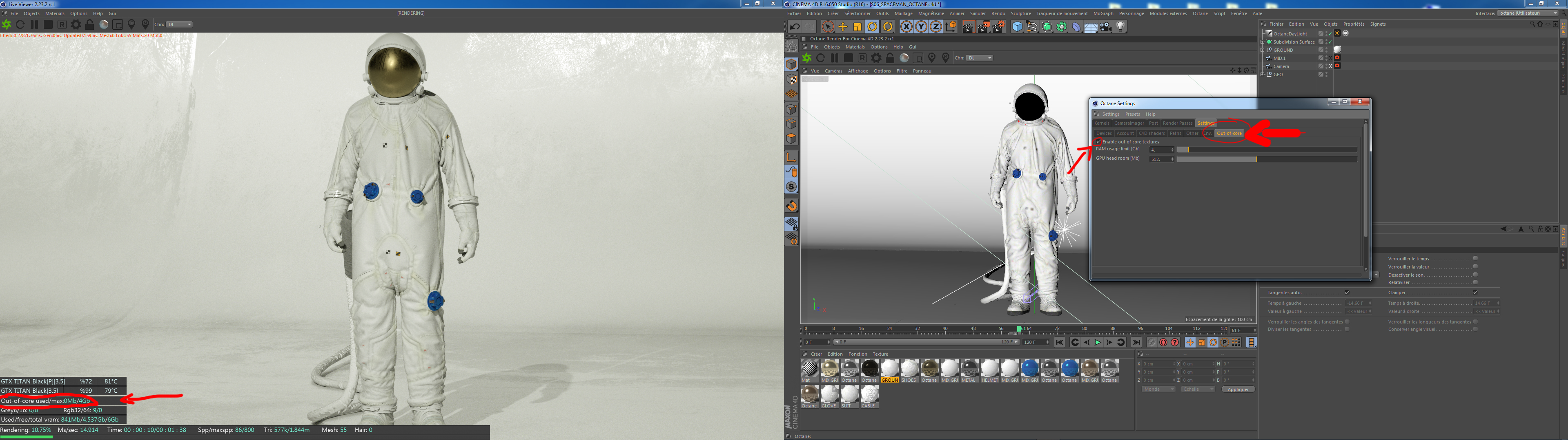 on the picture, you can see the out of core is activate, but nothing is loaded in the "available memory" as you can see in the preview window (0mb/4Gb)