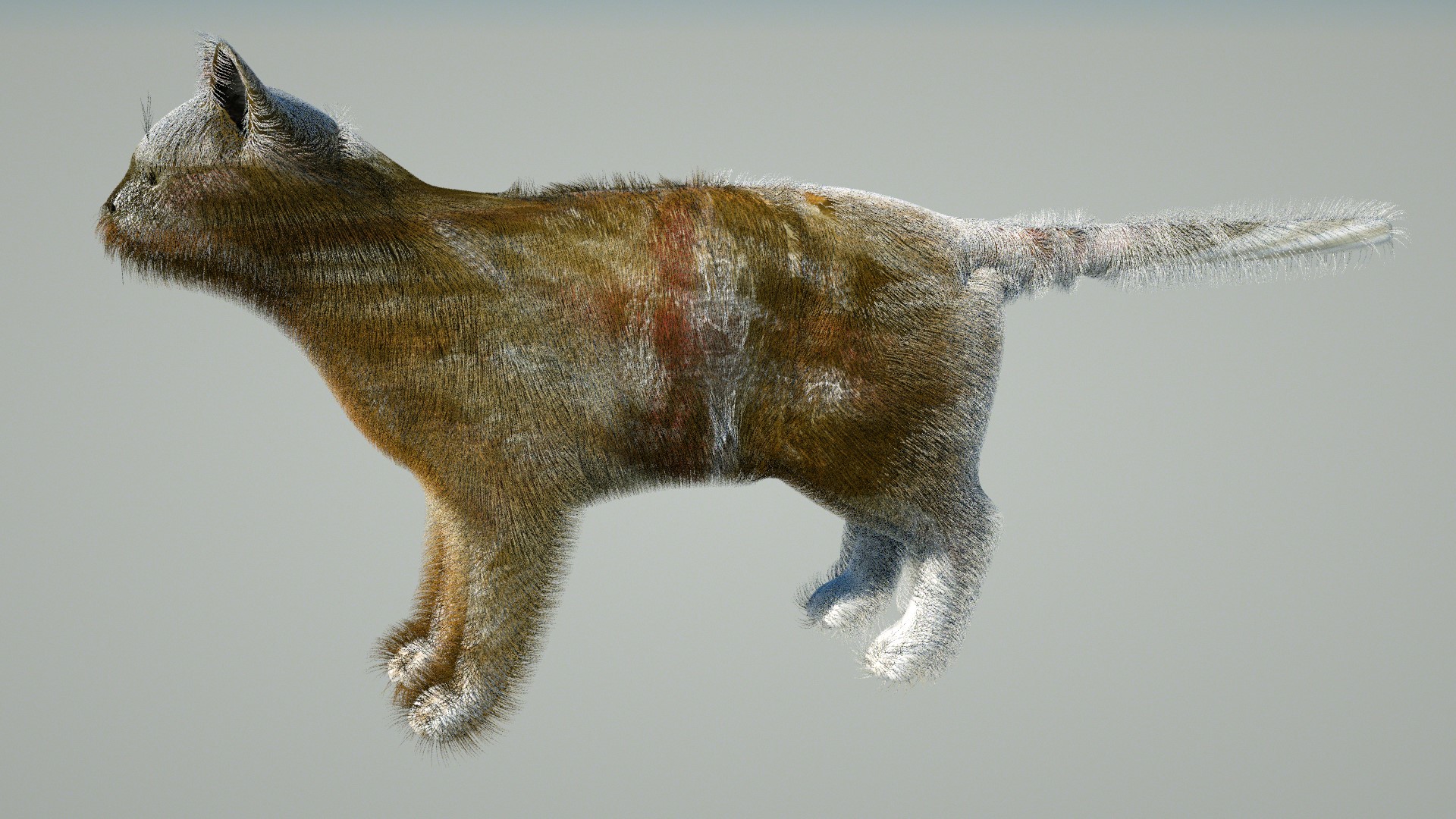 after finding a furry sphere made a pretty good match with the underlying geometry texture thought I would 3D paint my spherically mapped cat and use that texture map in the Octane shader
