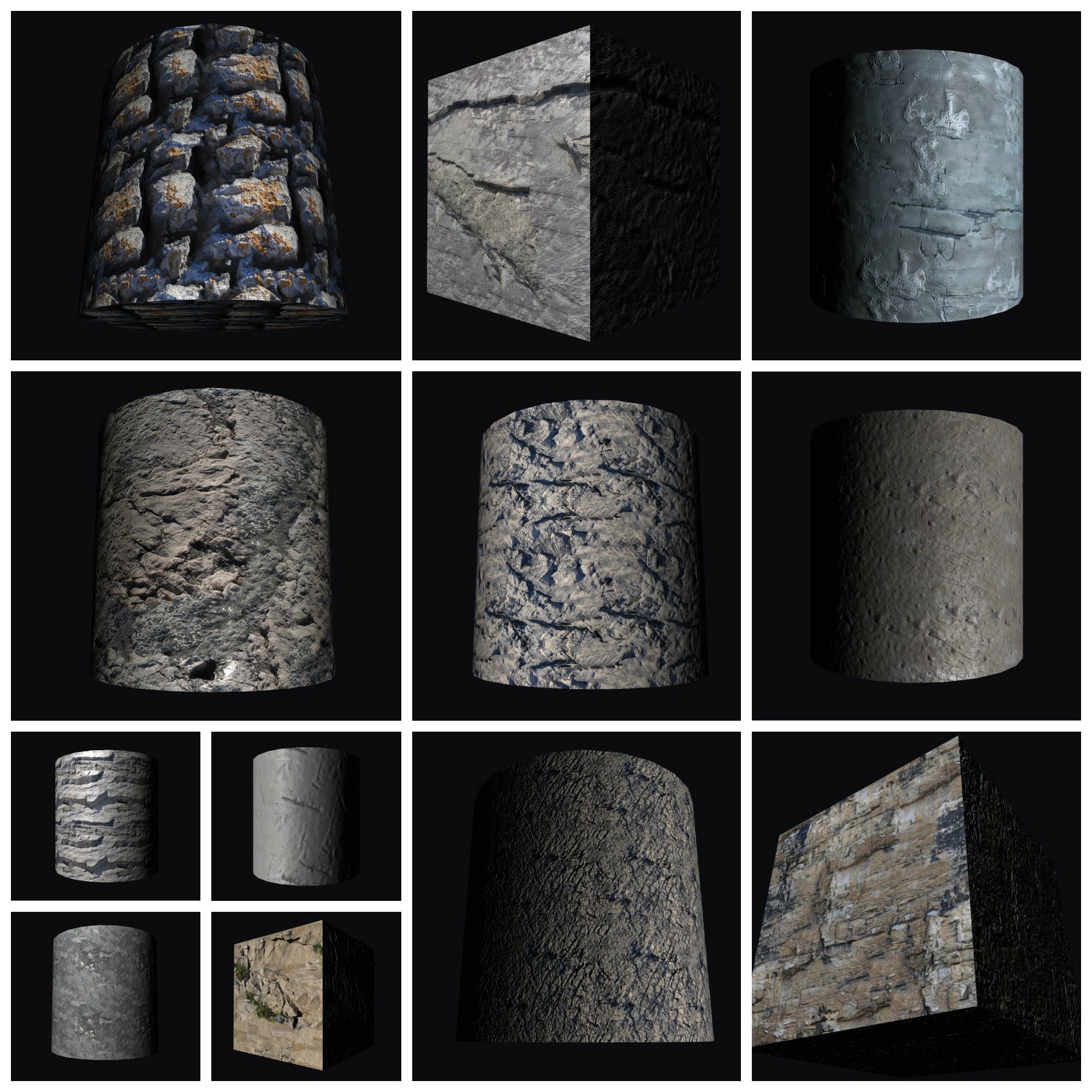 21 beach rock textures - tileable 2048px w disp, norm, spec